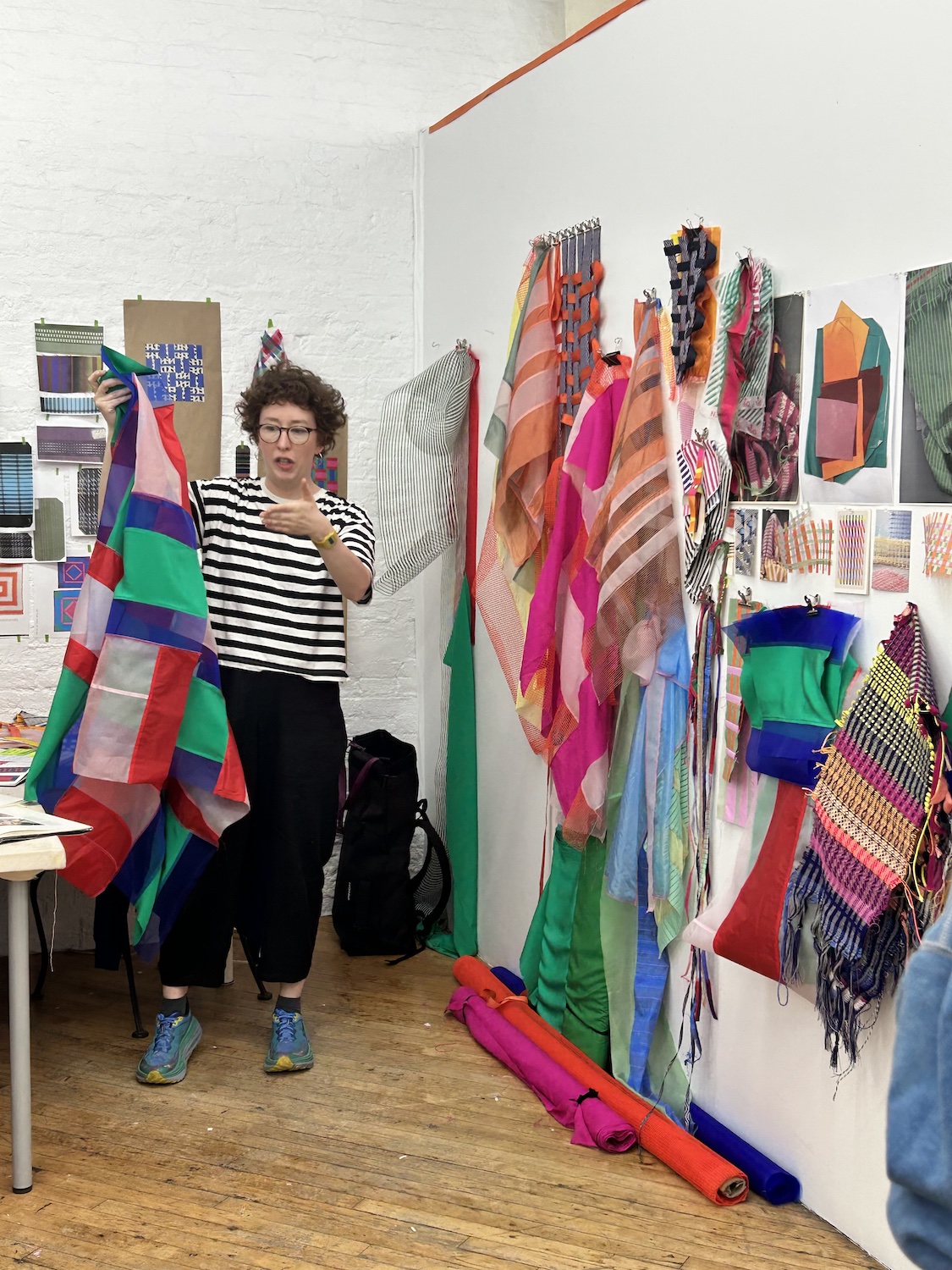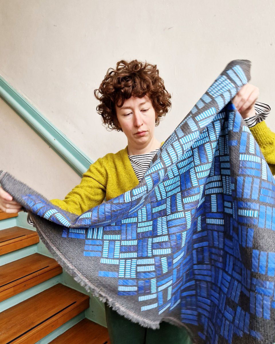 De aanwezigheid van Amy in ons atelier biedt een kans om direct contact te maken met haar moderne, architectonische benadering van textiel. Of je nu haar werk komt bekijken tijdens een wandeling door Oldeberkoop, of een paar dagen met haar samenwerkt aan de tafel: haar frisse blik op modern patchwork zal nog lang nagalmen in ons atelier.