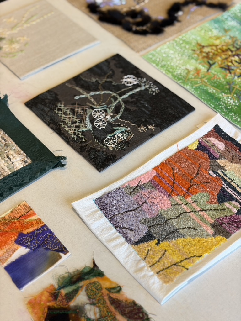 We begonnen de maand met de laatste les van onze borduurcursus; een traject van zes middagen waarin we zagen hoe cursisten hun eigen handschrift ontwikkelden. Het is altijd bijzonder om te zien hoe een groep gedurende de tijd groeit terwijl de technieken steeds verfijnder worden.