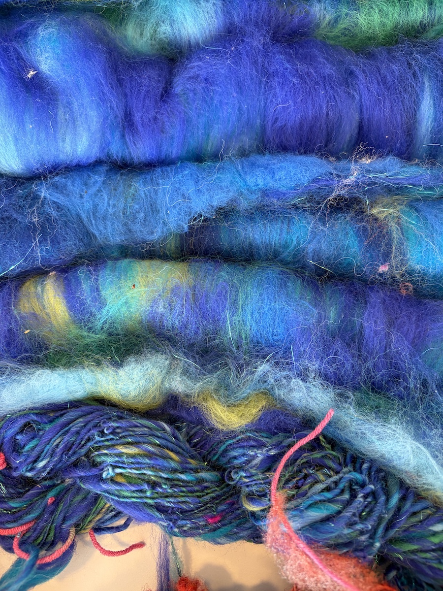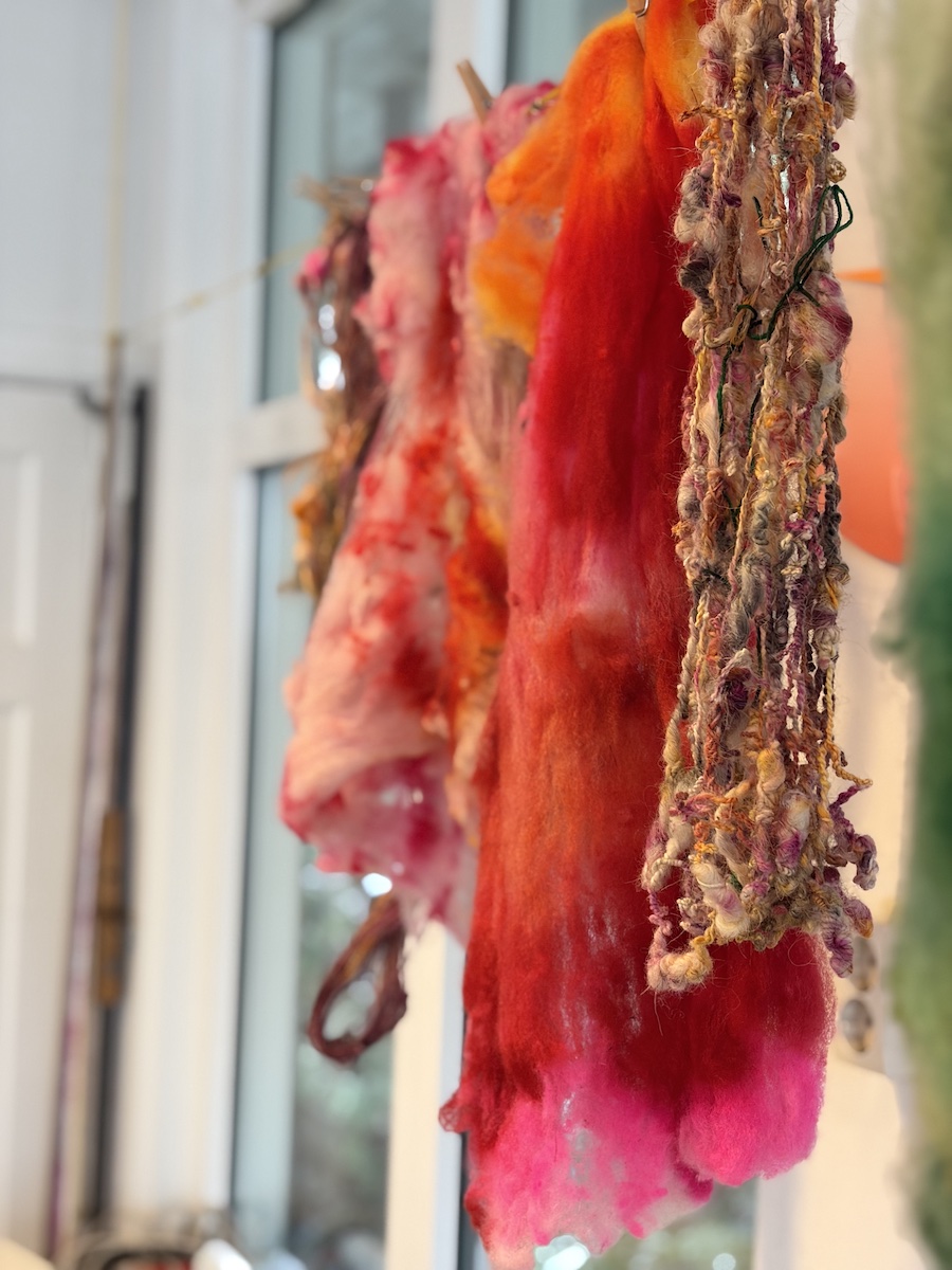 Een van de absolute hoogtepunten deze maand was de Winter Wol Week. Het atelier veranderde in een waar wolparadijs. Er werd volop gesponnen, gekaard en geverfd. De tafels lagen vol met prachtig geverfde vliezen en vers gekaarde wol in de meest uiteenlopende kleurnuances. Het was een week van hard werken, veel lachen en vooral heel veel delen van kennis en ambacht. Een echt feest voor iedereen met een hart voor wol.