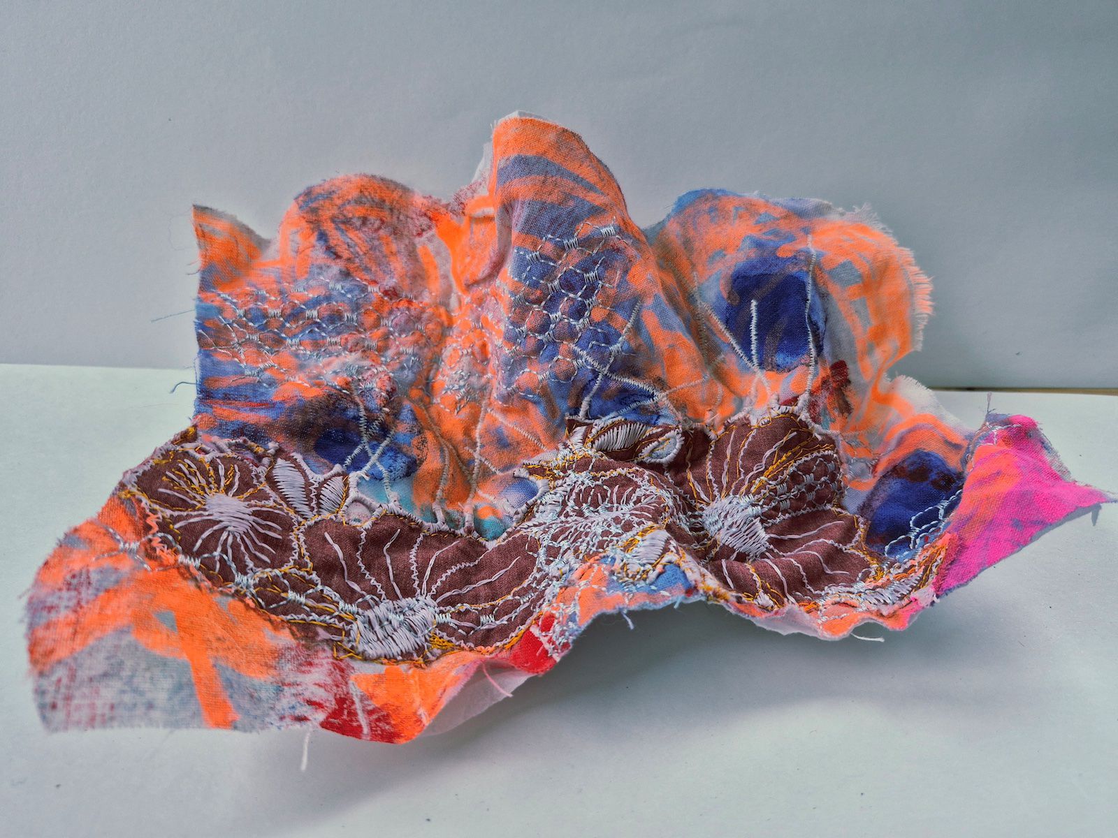 In this masterclass week we will explore surfaces, colour mood and combination of different materials. Our theme will be “Inside-outside”, it’s about making visible surfaces but also the “hidden” inside. We can use either leftovers from your former textile and mixedmedia experiments (stitched pieces, prints on paper or cloth, beloved pieces from your wardrobe that you don’t wear anymore, etc.). Further we are working with new ideas and fresh materials to produce stunning surface quality and telling stories around this material. In the workshop we will play with different structures such as a classical book form but also the idea of a tunnel book. We also go further to explore more abstract objects such as stitched vessels or multi-layered objects with a “looking inside or through” effect.
