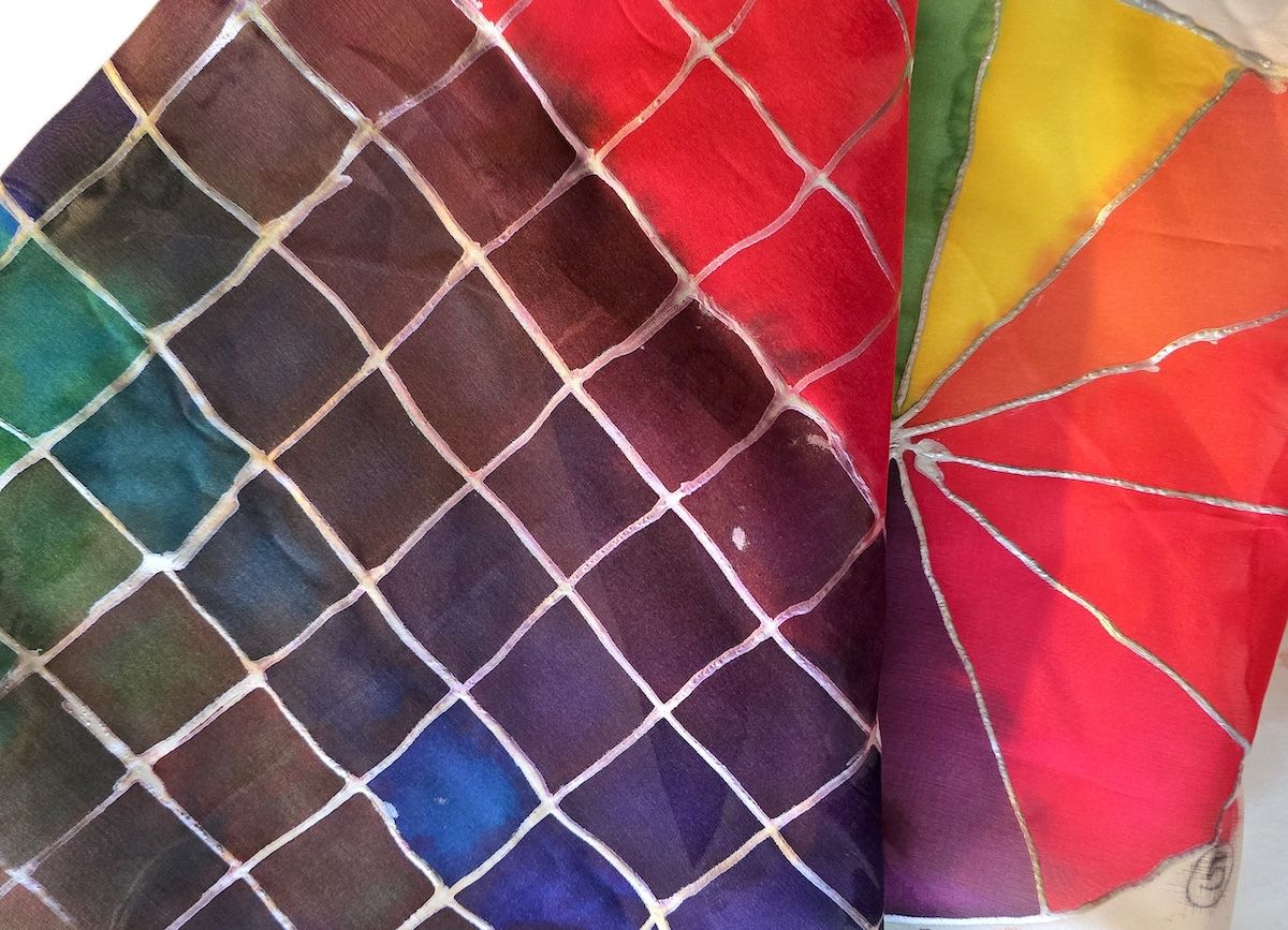 De mooiste Bojagi-werken ontstaan uit zelf geverfde stoffen. Daarom staat de eerste dag volledig in het teken van verftechnieken. Je gaat ervaren en leren hoe je cotton organdy (plantaardige oorsprong) en zijden organza (dierlijke oorsprong) verft. Beide stoffen hebben een ander, eigen verfproces. We gaan hierbij in één lap kleurenovergangen aanbrengen. Natuurlijk kun je gebruik maken van kant-en-klare kleuren maar om te begrijpen hoe kleuren ontstaan beginnen we bij de basis. We gaan uit van de drie primaire kleuren (rood, geel, blauw) en mengen deze zelf tot een palet van 88 unieke tinten. Zo heb je de controle over het kleurgebruik van jouw kunstwerk.