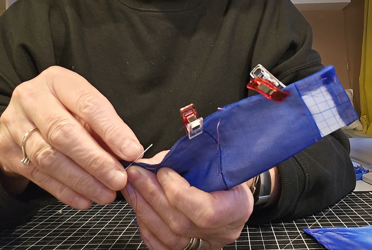 Deel 2: Als tegenhanger van het snellere werken met de naaimachine, ga je aan de slag met de traditie van het naaien met de hand. Met de hand houd je maximale controle over de stof. Dit is cruciaal bij het werken met de weerbarstige zijden organza. Zijden organza heeft een 'eigen wil' en laat zich het beste sturen door precieze, handgemaakte steken.