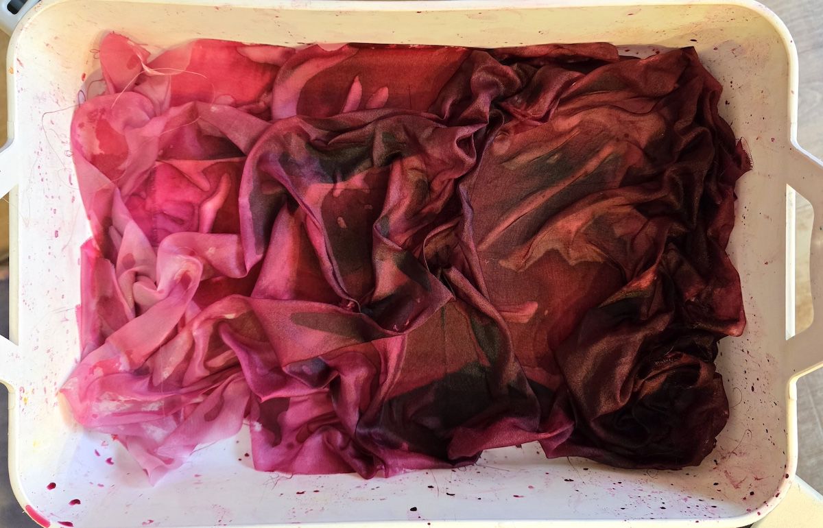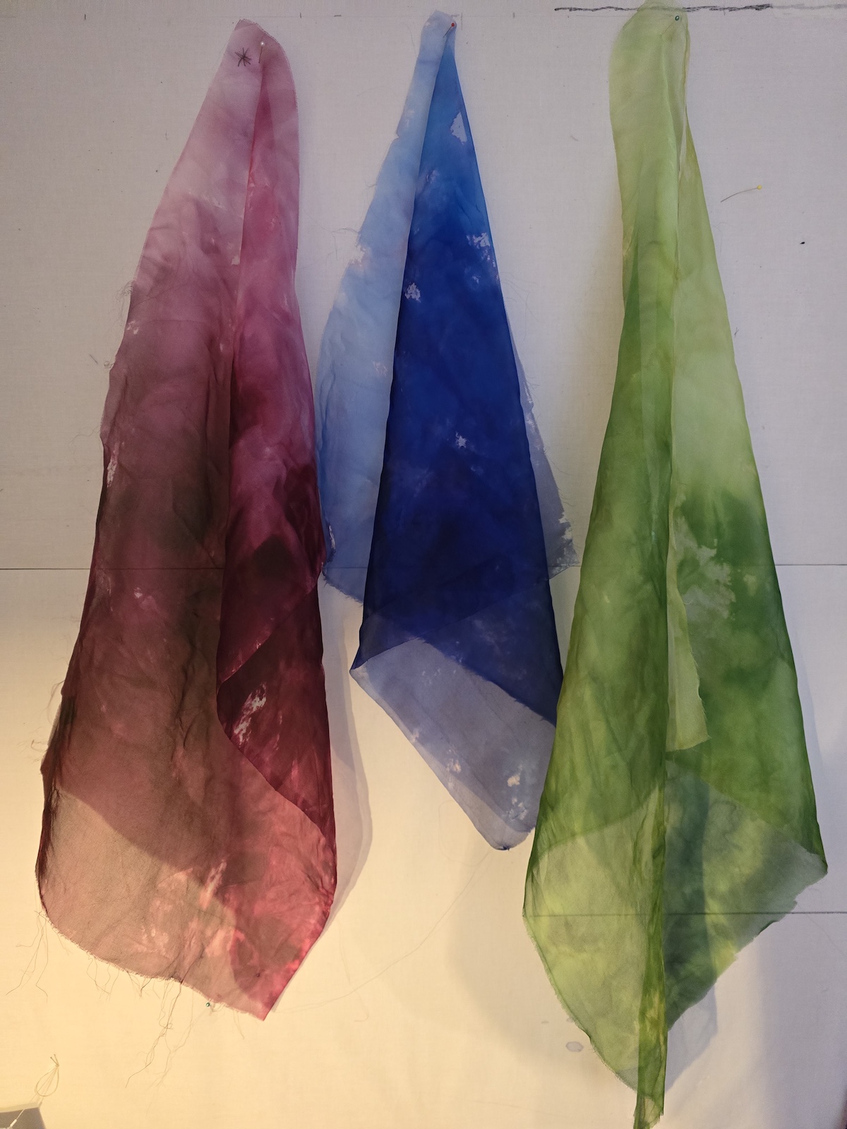 Alle materialen voor het stofverven, de cotton organdy en de zijden organza zijn bij de prijs inbegrepen. Wil je een groter werkstuk maken? Extra materiaal is ter plekke aan te schaffen.