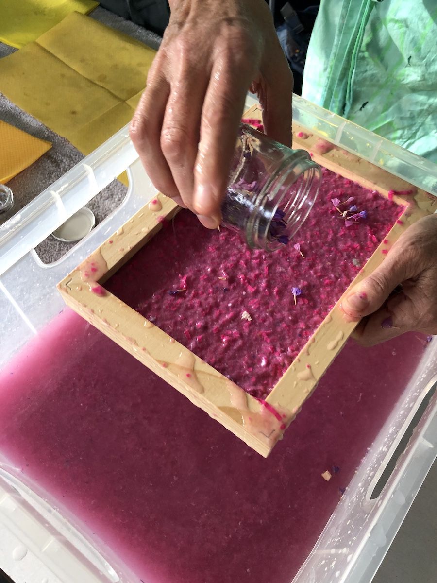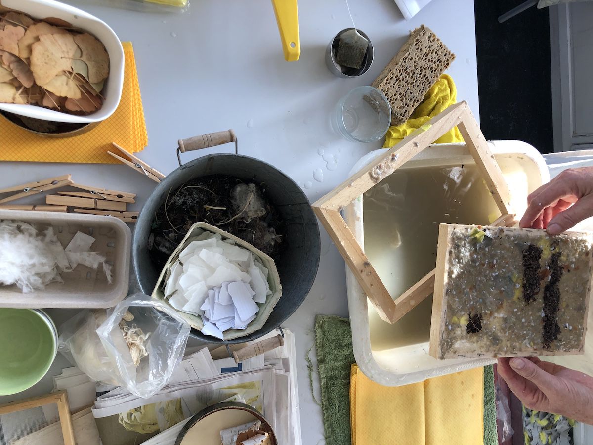 De workshop is inclusief een schepraampje en doekjes om het papier op te laten drogen. Zo kun je na afloop meteen zelf aan de slag met alles wat je geleerd hebt.