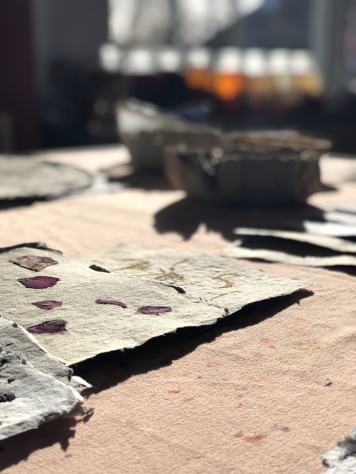 In deze workshop leer je de kunst van het papierscheppen vanaf de basis. We nemen je stap voor stap mee in het proces: van het maken van de pulp tot het scheppen, drogen en experimenteren met toevoegingen.