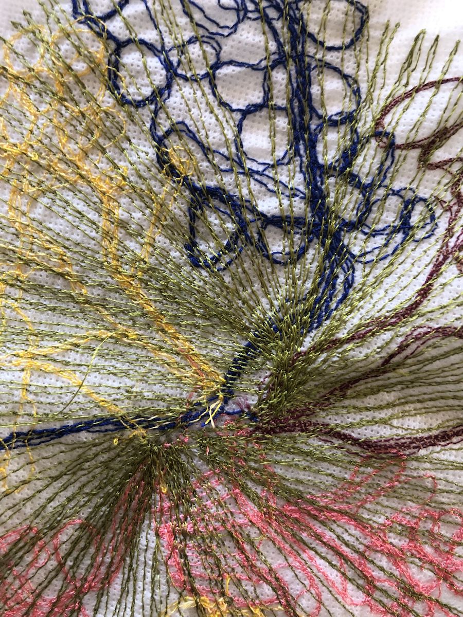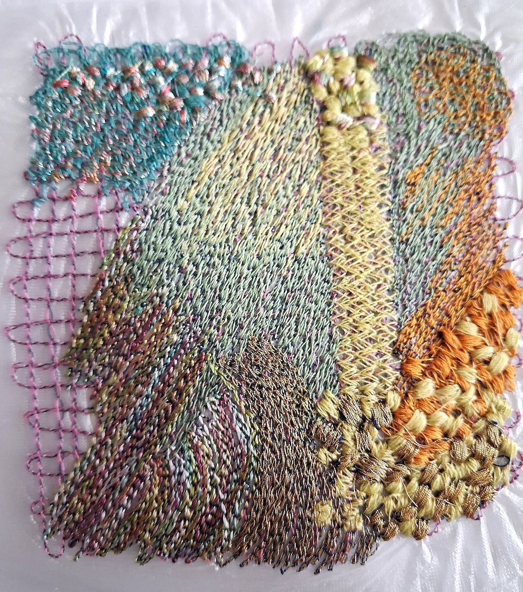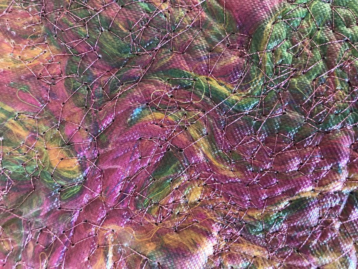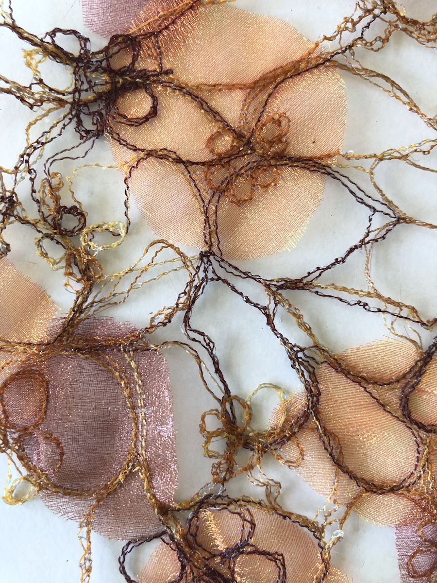 Daarnaast besteden we aandacht aan het schilderen met draden, een techniek die de mogelijkheid biedt om schilderachtige kunstwerken te maken die uitsluitend uit stiksels bestaan, geheel zonder ondergrond. Als laatste gaan we de overstap maken naar 3D-werken om ruimtelijke vormen te creëren, zoals schalen of vrije sculpturale structuren. Hiervoor zullen we drie methoden onderzoeken: het oplosbaar vlies niet volledig uitspoelen, waardoor de structuur bij drogen zijn vorm behoudt; het integreren van Wireform (een flexibel aluminium mesh) tussen de lagen om het in vorm te brengen; en het combineren van de kantachtige vliezen met Encaustic Medium, wat de structuur flexibel houdt totdat het afkoelt.
