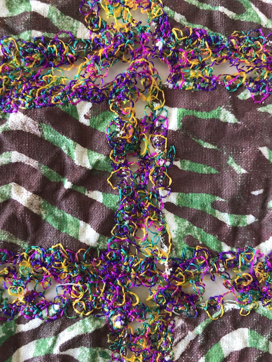 Een belangrijk thema in deze zomerweek is het creëren van contrasten. We gaan fijne, gossamer effecten realiseren door gebruik te maken van machinegarens in combinatie met transparante stoffen zoals organza of zijde. Als contrast creëren we stevigere structuren met behulp van dikkere fantasie(brei)garens en compactere stofresten. Deze basisstukken kunnen vervolgens met de hand verder geborduurd worden, wat resulteert in rijke oppervlakken en structuren. We starten de week met een oefening in kantachtig patchwork: katoenen lapjes worden eerst bestempeld met textielverf en daarna bewerkt tot een complexe, kantachtige structuur. We experimenteren ook met het inzetten van zeer kwetsbare materialen, zoals Angelina, waarbij het verdwijnvlies als beschermende laag fungeert tijdens het borduren.