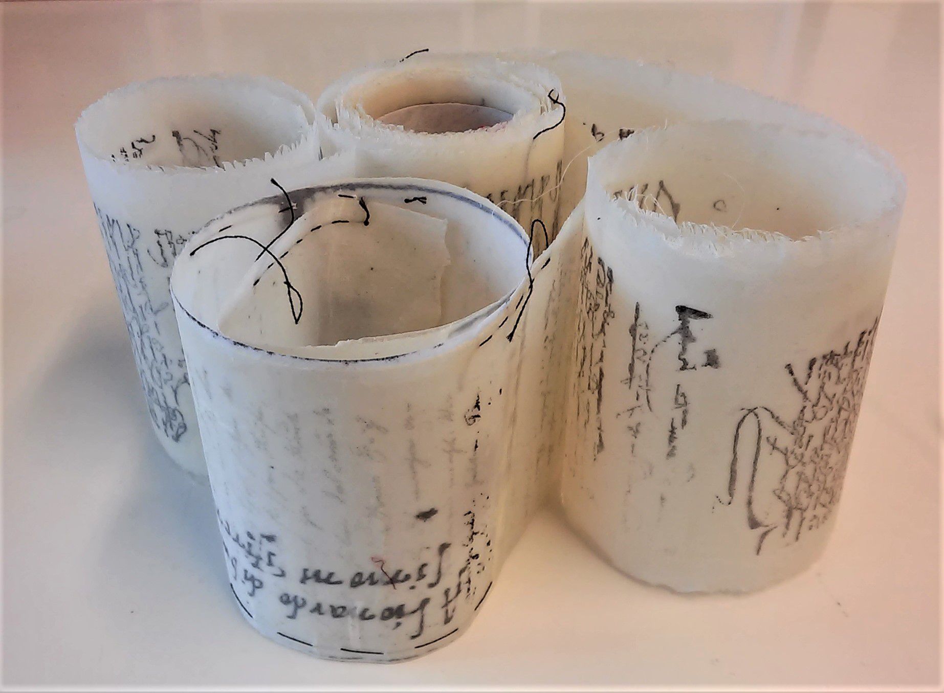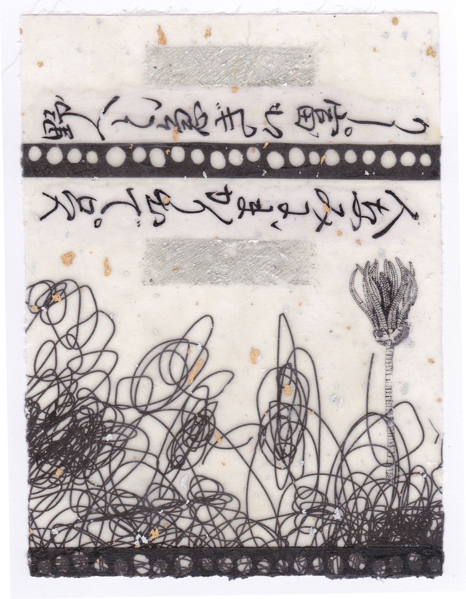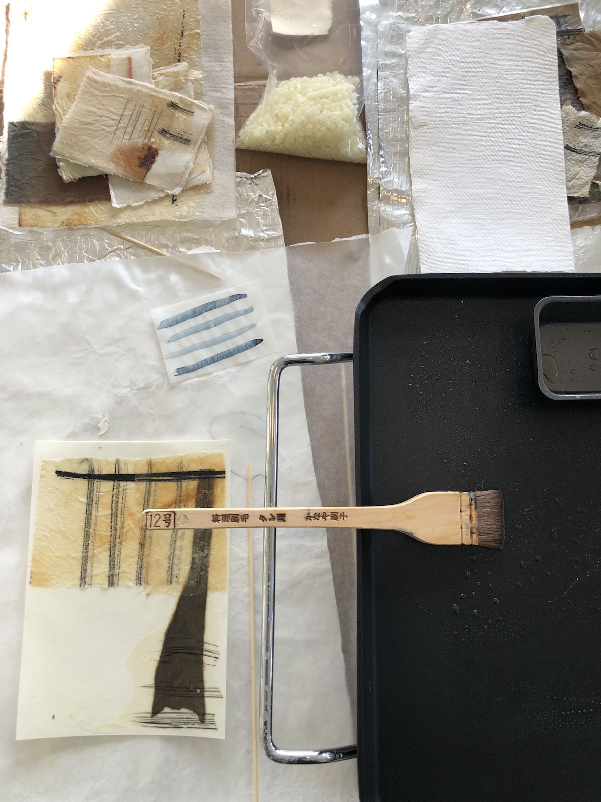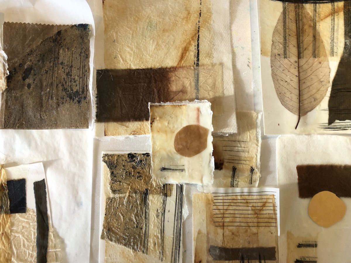 We maken eigen kwasten van natuurlijke materialen en gebruiken Indische inkt voor spontane mark-making op grote vellen papier. Japanse technieken zoals momigami en shifu komen ook aan bod, en we bouwen een collectie versierde papieren op voor collages, waarbij we aandacht besteden aan compositie en het gebruik van hand- of machineborduurwerk.