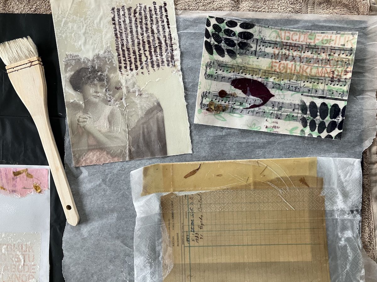Ook is foto-transfer mogelijk, waarbij laserprints op het afgekoelde encaustic-oppervlak worden overgebracht. Door eigen foto’s te gebruiken, krijgt elke collage een persoonlijk verhaal. Tot slot kunnen alle proefjes worden samengebracht in experimentele boekvormen, zoals leporello’s, boekjes met losse blaadjes, rollen of scrolls.