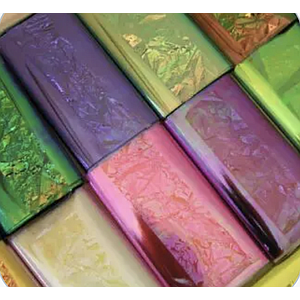 Nylon vezels, iriserende kleuren. Ongeveer 10 gram per verpakking.