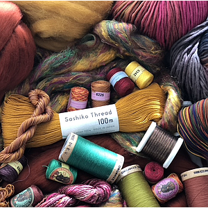 Een gevarieerde collectie vezelmixen in oranje tinten.